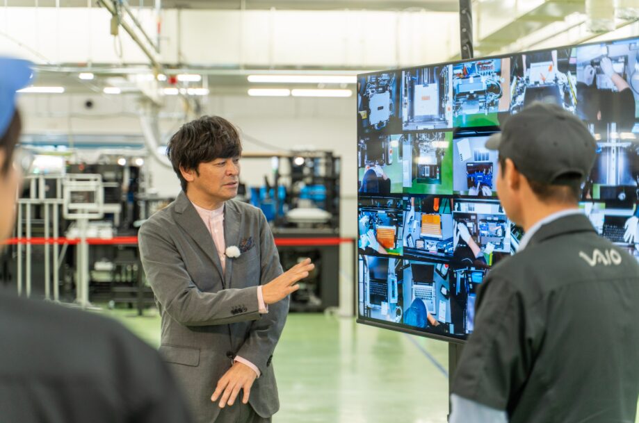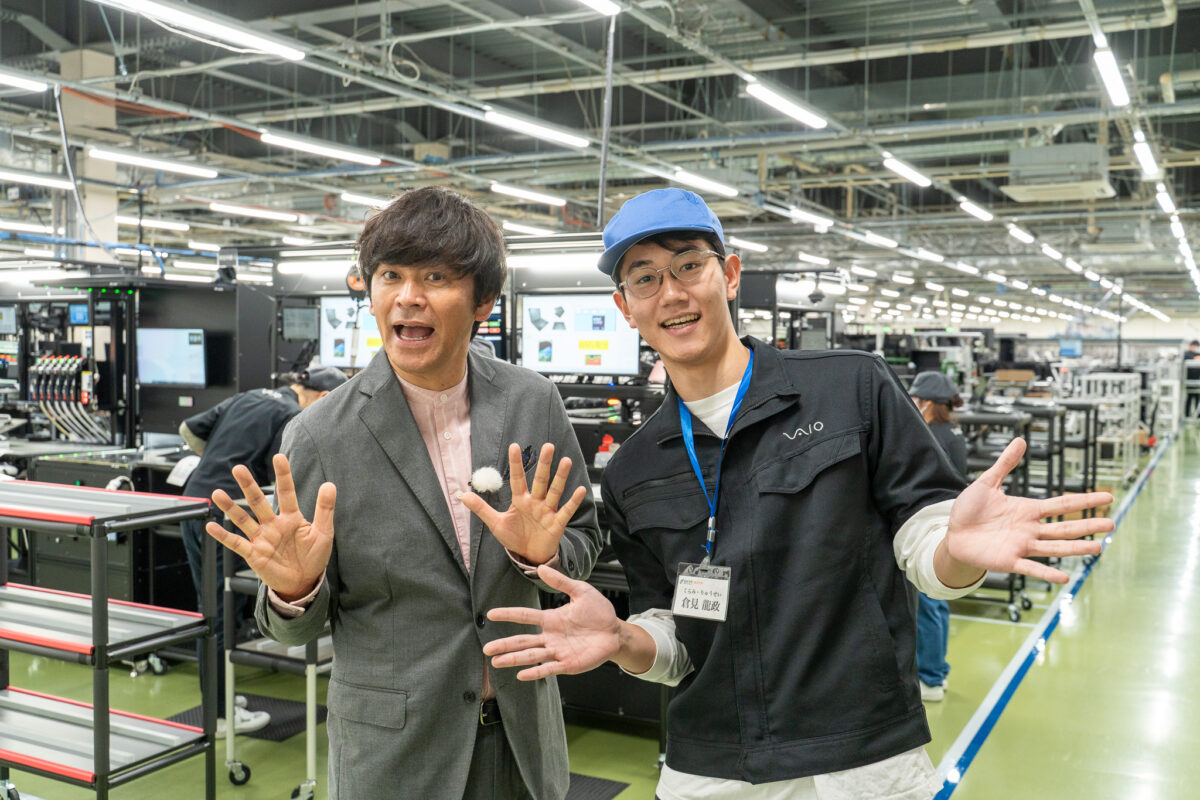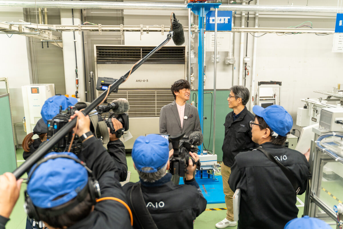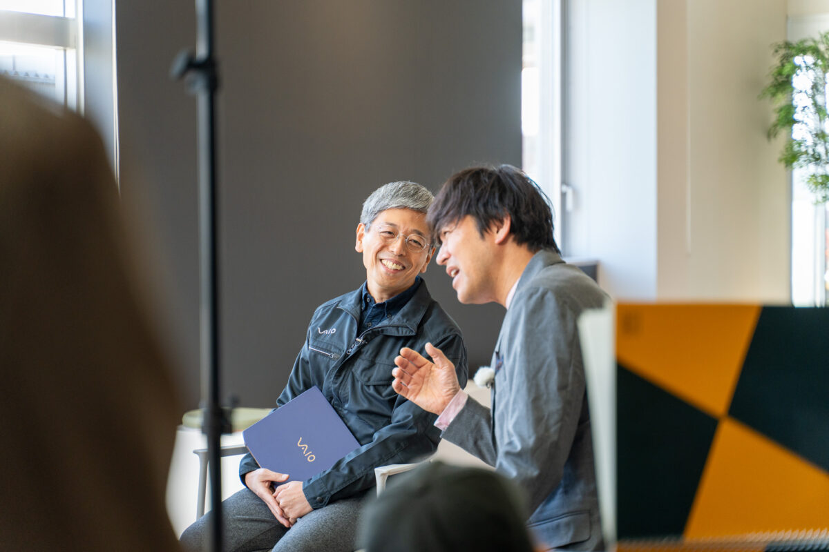 撮影が始まると、岡田さんは次々とVAIOの社長さんや社員さんと会話を通してVAIOの魅力を掘り下げていきます。そのやり取りを見ていて印象的だったのは、「話を聞く」というよりも、話したくなる空気をつくっているという点でした。
