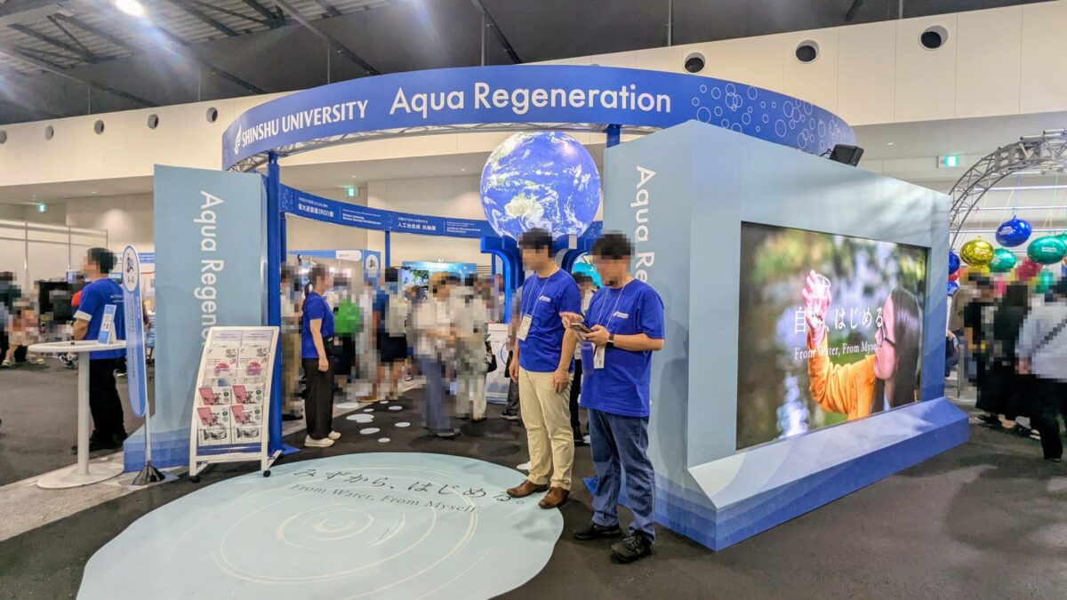その中でも信州大学は、「地球とつながる」のメイン展示「水の惑星地球を守れ! アクア・リジェネレーション科学者たちの挑戦」を出展。ここで「アクア・リジェネレーション」(Aqua Regeneration)について紹介していました。