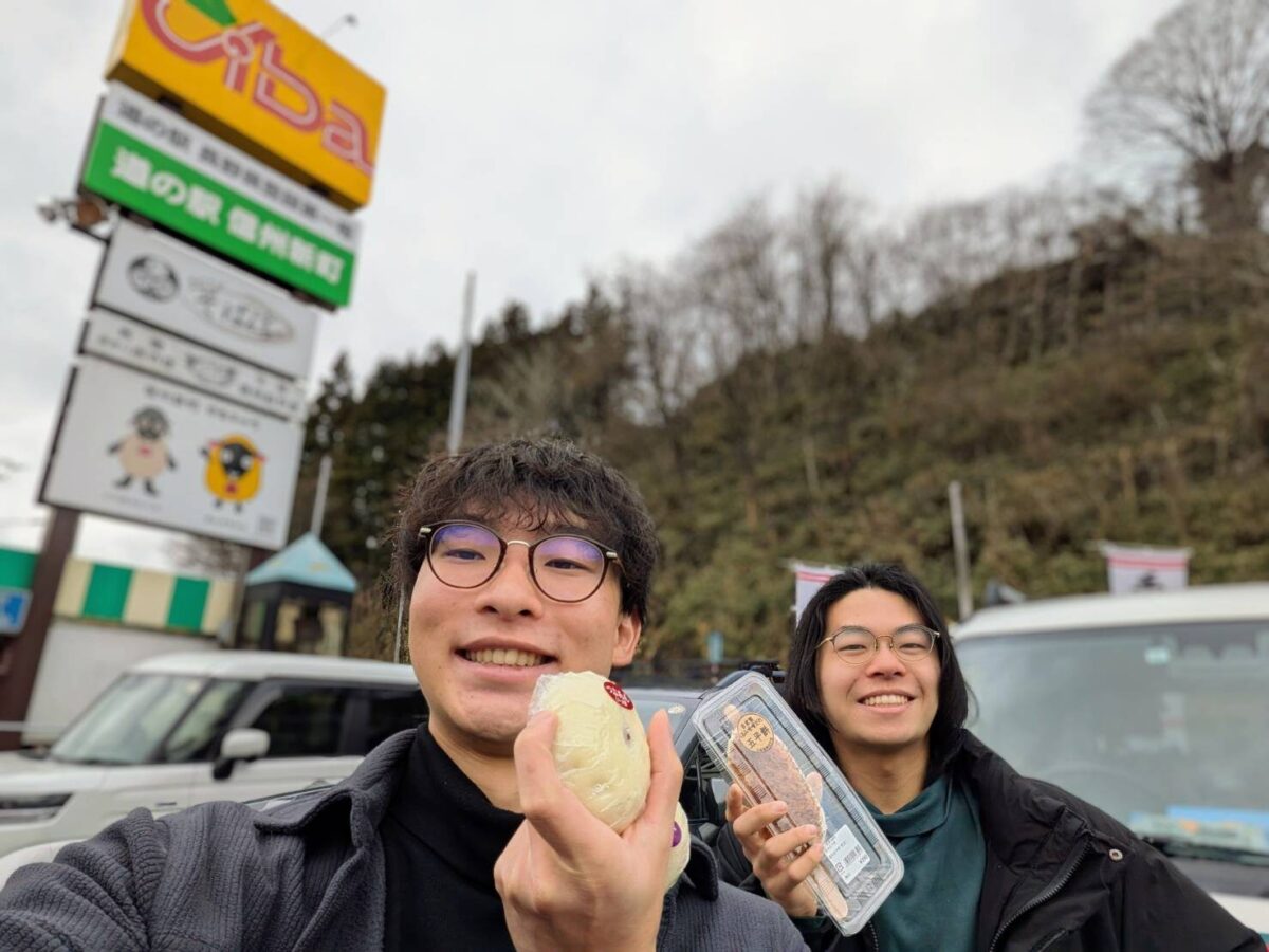 長野まではそこまで混んでいないので下道ドライブもおすすめです!下道の魅力は、途中でローカルの道の駅に寄れる点!!今回の道中で寄った道の駅信州新町では、長野県のローカルフード「おやき」と「五平餅」を買いました!