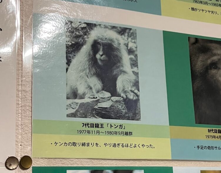 お土産ショップでは、歴代のボスザル紹介コーナーがありました。小学校の放送室に飾られていた歴代校長先生を思い出しました。