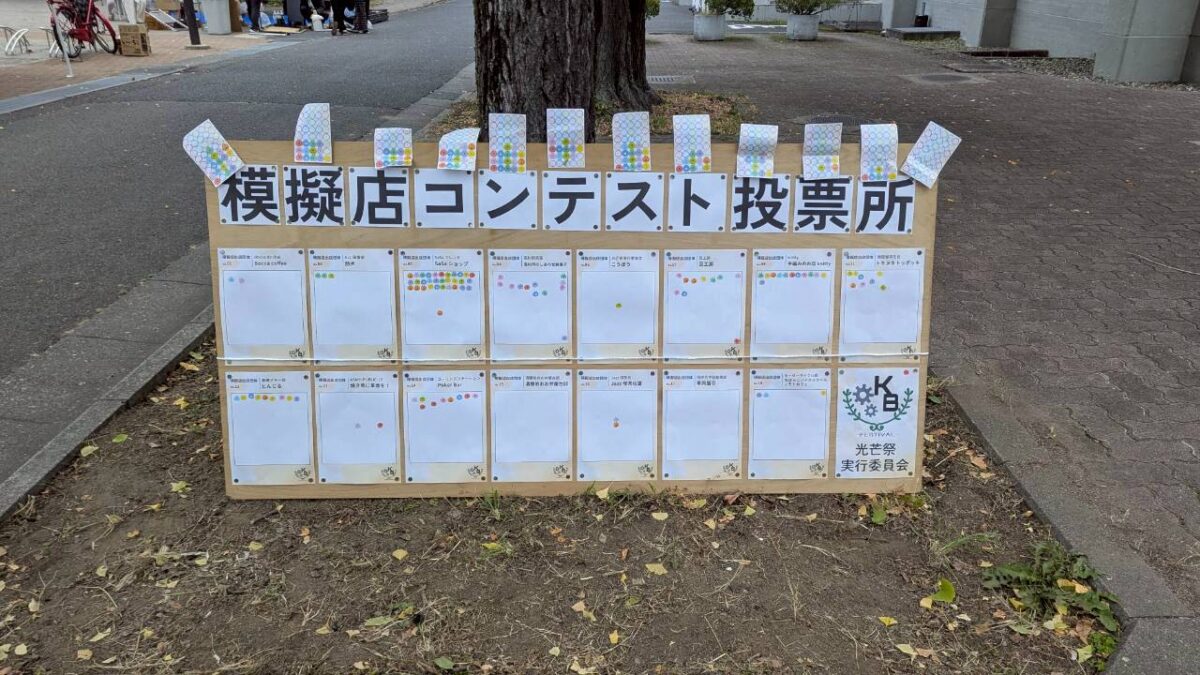 また、当日は「模擬店コンテスト」も開催されました。来場者が良いと感じた模擬店に1人1枚シールを貼ることで投票でき、人気の模擬店が一目瞭然に! 来場者参加型なのは楽しいと思えますね。実行委員会によると、模擬店コンテストで上位だった団体には、Amazonギフトカードが後日贈呈されたそうです。