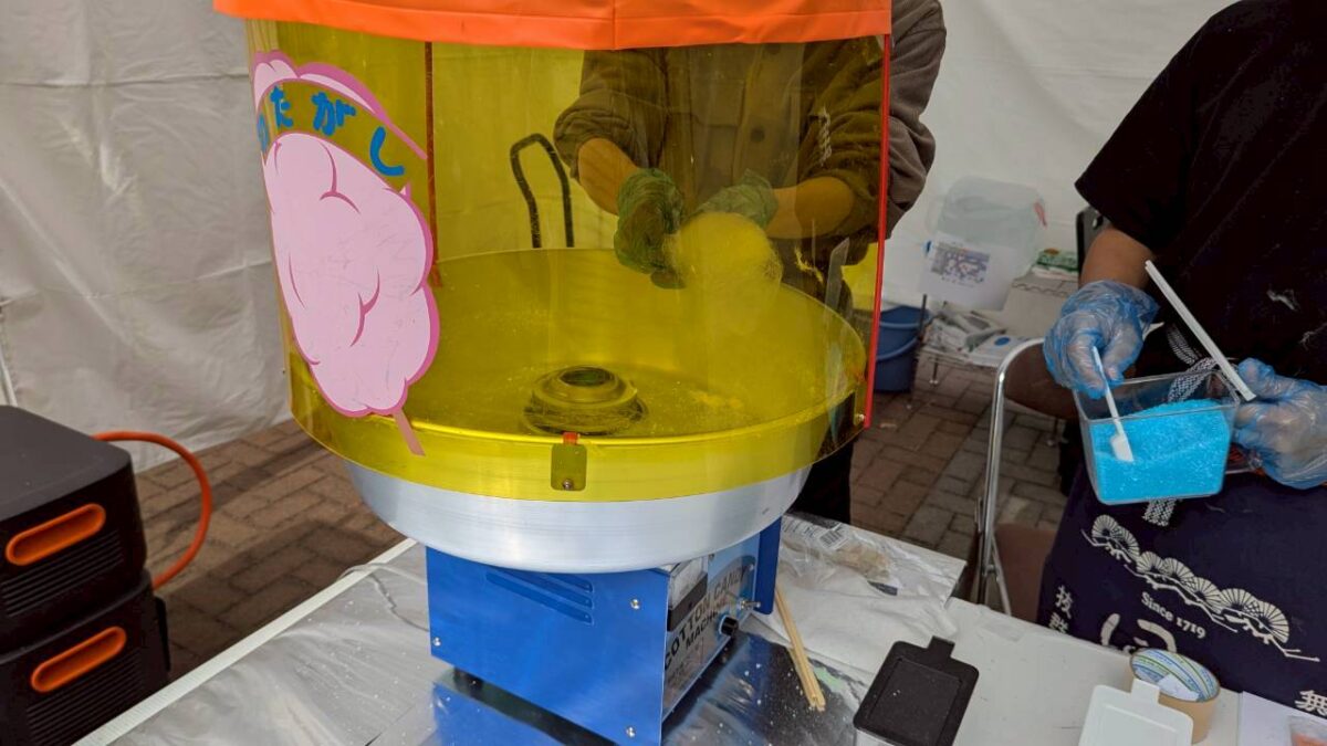 工学部建築学科の高村研究室が太陽光発電の電力を利用して作ったわたあめを作っていました。非常にエコでとても美味い!