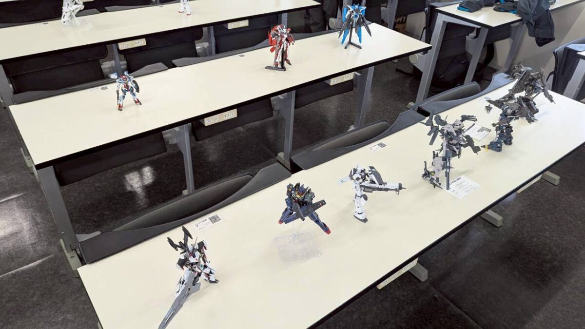 ガンプラや戦車といったかっこいいプラモデルの作品がたくさん! なかにはサークル員で協力して組み立てたものもあるそうです。