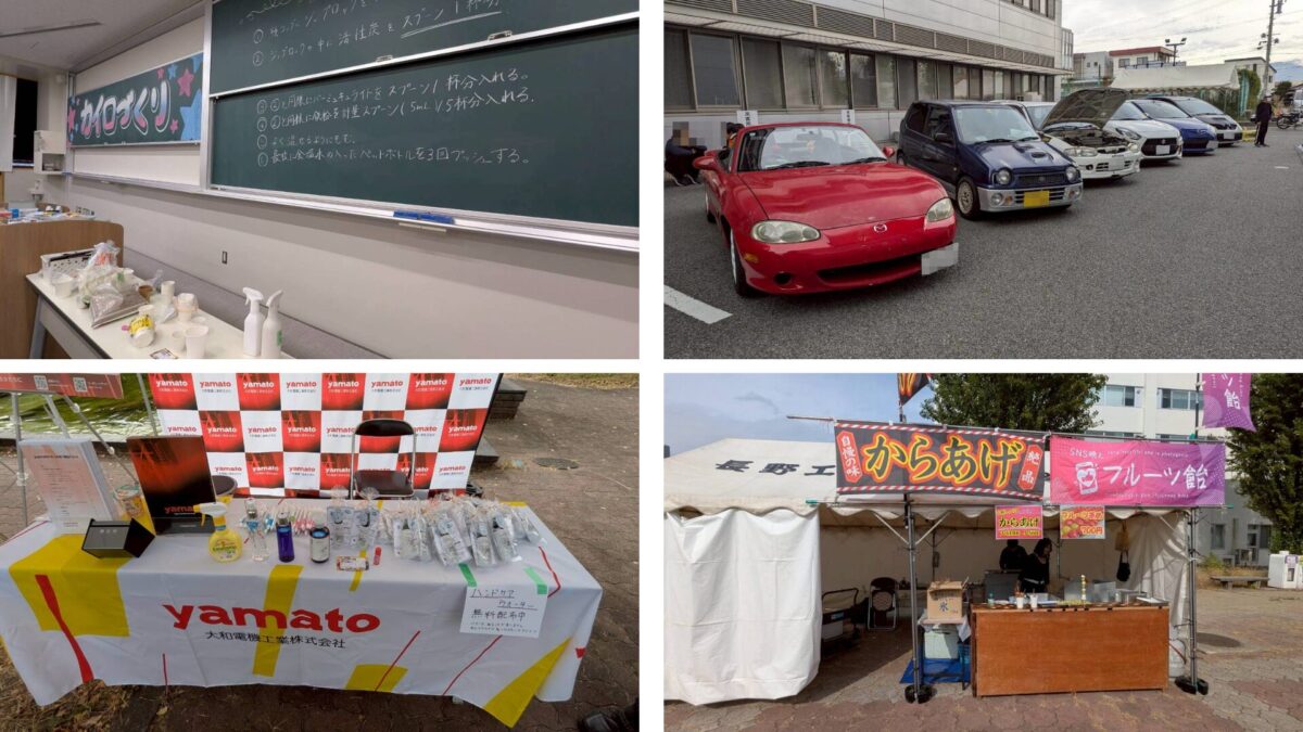 光芒祭は長野(工学)キャンパスで行われ、工学部の学生が中心となっていますが、同じ長野市内にキャンパスのある教育学部の学生も数多く参加しています。2020年は中止、2021年のオンライン開催、2022年の小規模開催を経て、2023年からは模擬店も復活しながら再び規模を大きくして開催されています!
