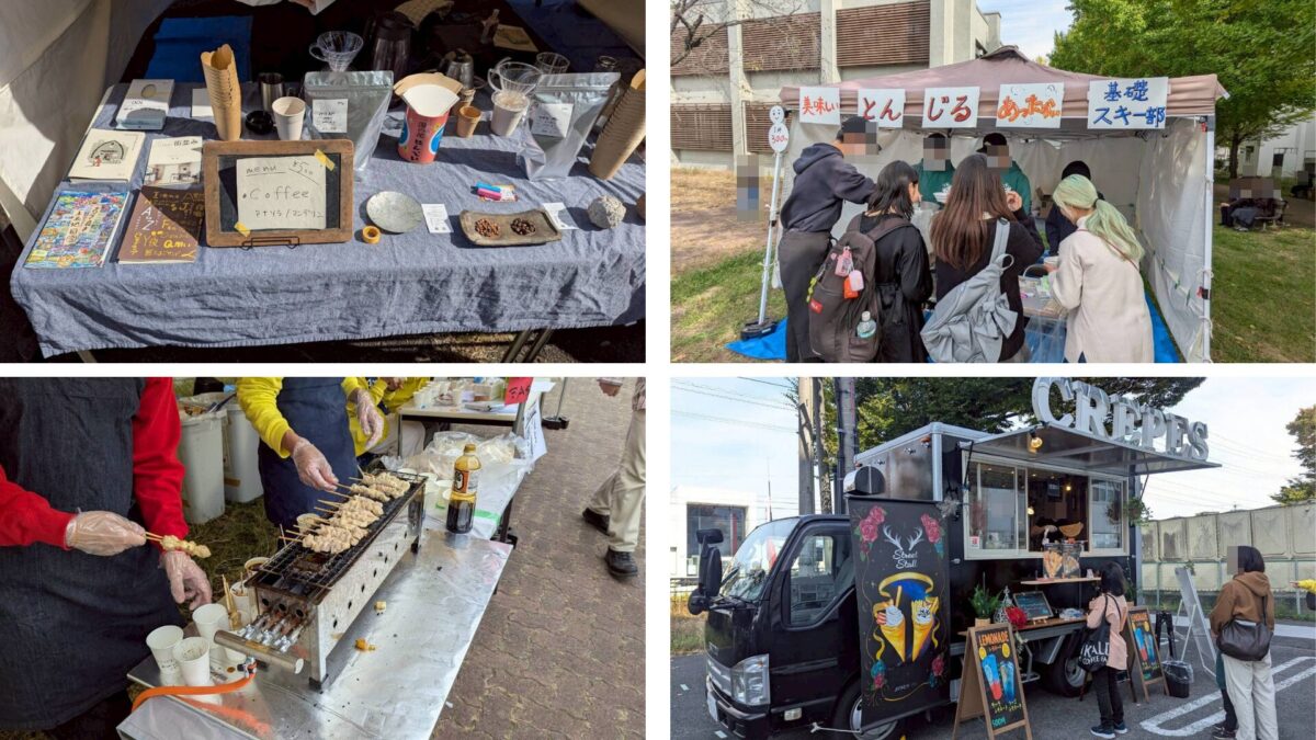 学生有志のグループやサークル、研究室による露店が21件あり、軽食をとったり体験したりすることができました。地元の企業のブースも数多く、就活関連の展示も印象的でした!