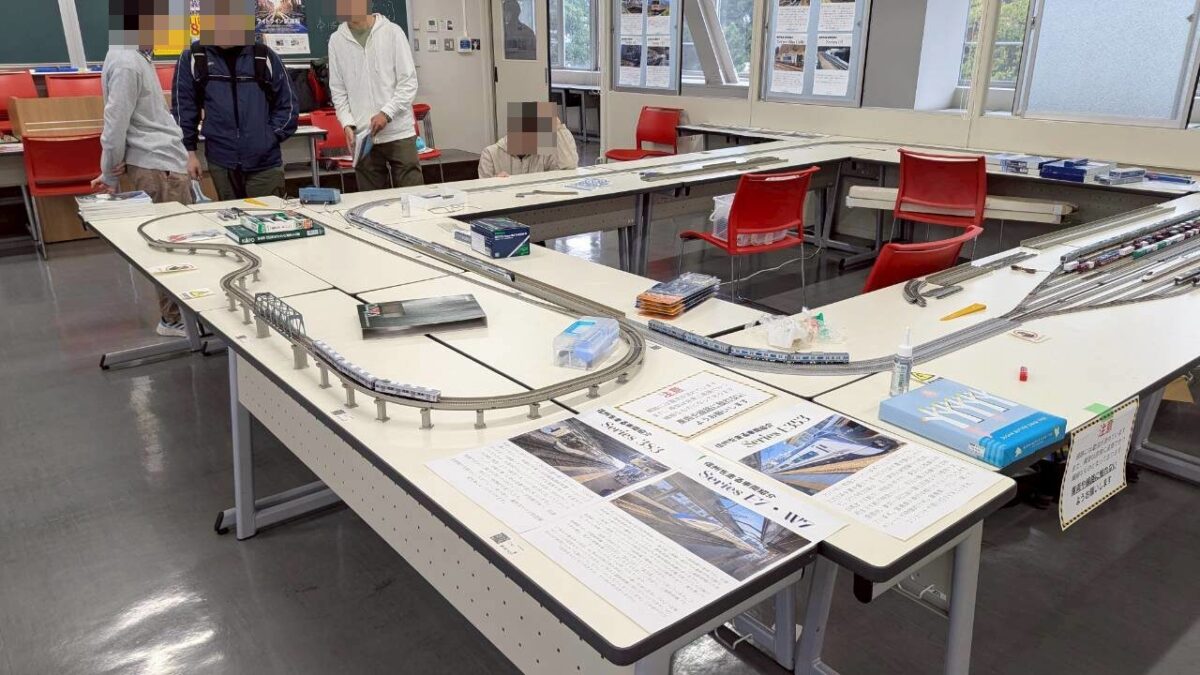 鉄道やバス、飛行機といった乗り物が好きな信大生のサークルです。執筆者の私、なぎまるも実はサークル員。鉄道グッズや鉄道模型(Nゲージ)を展示したり、電車の運転体験を行ったりしていました。