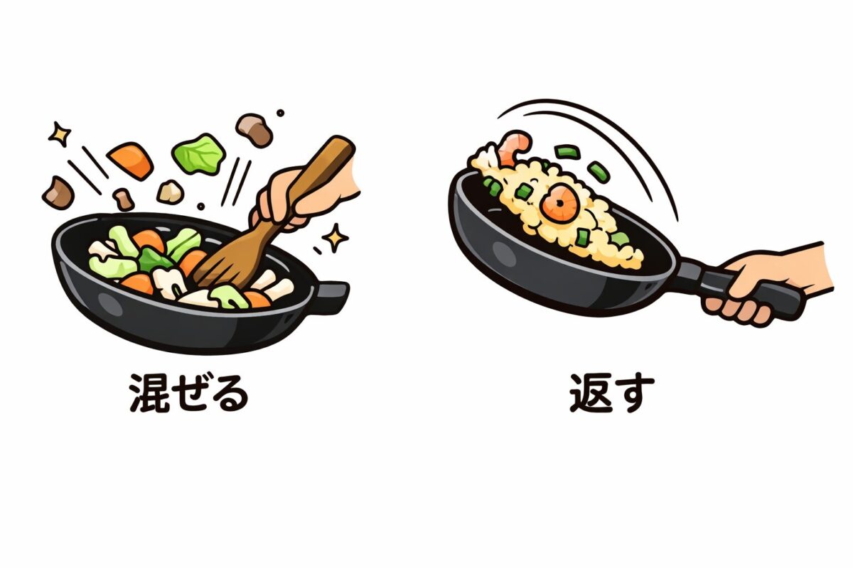 対処は「混ぜる」より「返す」。上下にパンケーキをひっくり返すイメージで、底からすくって上に乗せ直します。具材の軌道が鍋の内側に収まりやすく、散らかりが減りました。回鍋肉だけでなく、麻婆豆腐のように崩したくない具材でも応用できます。