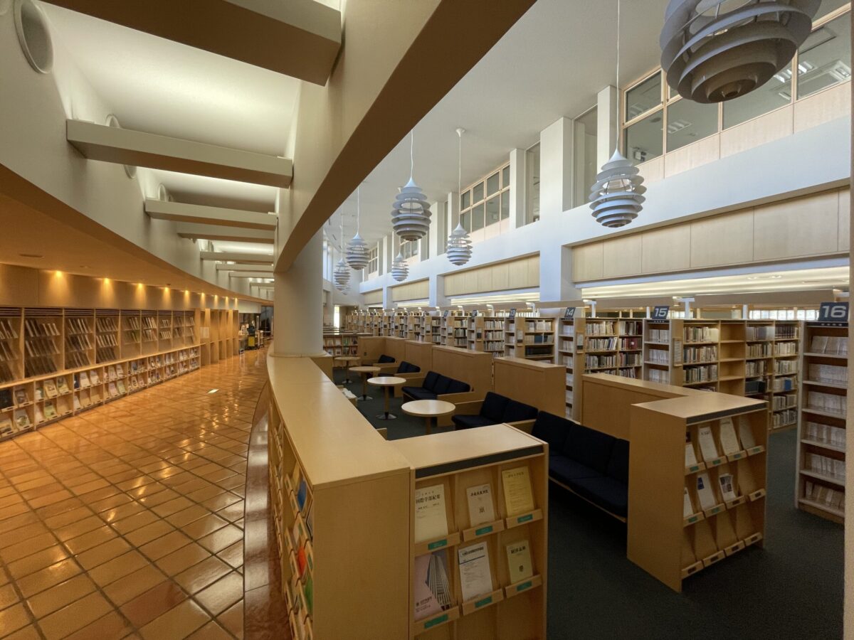 付属図書館は地域の人も使用でき、中には自習スペースも確保されていました。蔵書数15万冊で上田市の貴重な資料なども保存されているそうです。平日の開館時間は8時30分~20時、土曜日は10時~18時です。