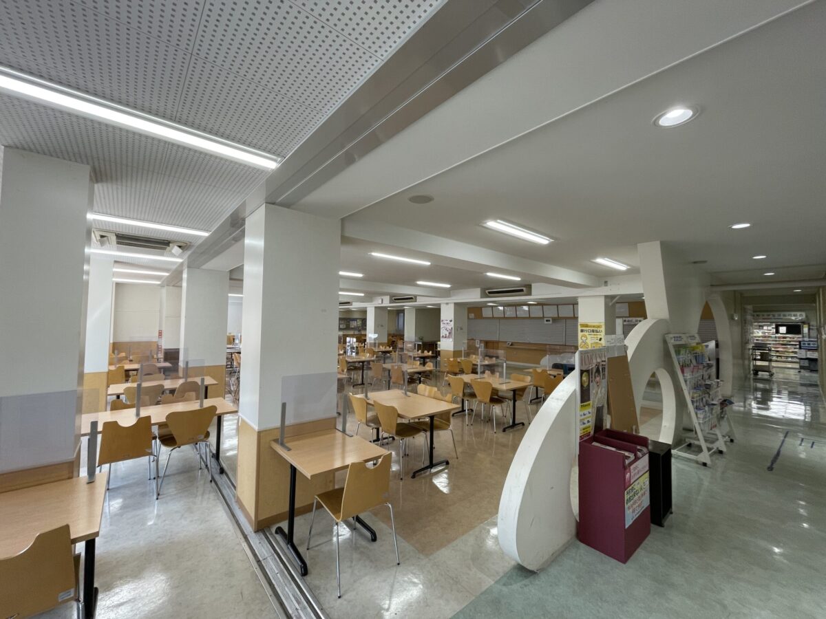 長大生がよく利用する施設の一つである大学食堂。その奥には生協があり、教科書や食料品、生活用品も購入することができます。生協に加入している人は会員割も使えます。ちなみに長大から最寄りのコンビニまで徒歩4分程度です。大学食堂はお昼の時間はもちろん、自習スペースとしても使えます!