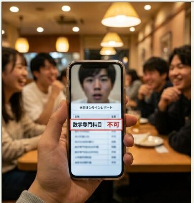 目に飛び込んできたのは、数学科の専門科目に並ぶ無慈悲な「不可」の文字。中間試験がなく、期末試験の結果のみで評価が決まる科目だったため、一回の失敗がそのまま「落単」という結果に直結していました。4年生までに単位を揃えれば留年しないという制度があるとはいえ、目の前の現実に背筋が凍り、ファミレスの喧騒が遠のいていくような感覚に陥りました。
