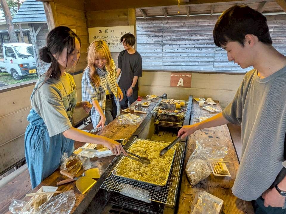 やっぱり肉と炭水化物はよく合います!お腹が落ち着いてきたタイミングで食べてほしいメニューです。みんなでワイワイ焼くのも楽しいポイント。バッシーたちは豚トロやキャベツなどをあえていただきました!結構量もあったので、大満足です。