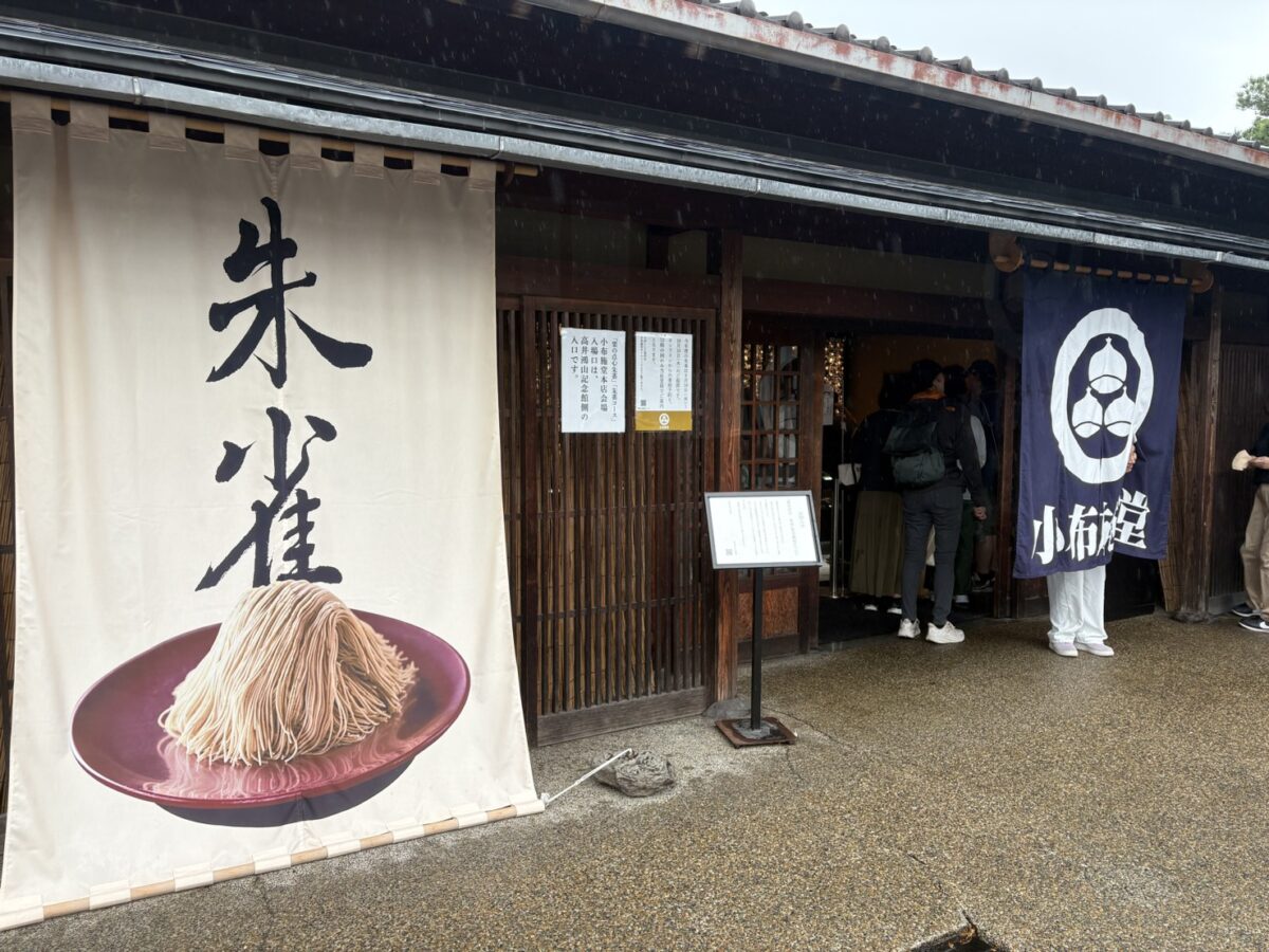 去年は予約が間に合わず食べられなかった念願の「栗の天心 朱雀」ですが、今年は食べられました! 会場は3つ(本宅、小布施堂本店、えんとつ)あり、ペットと食べられる席も設けられています。私が食べた会場は「本宅」です。本店ののれんに向かって右側の門から入ります。