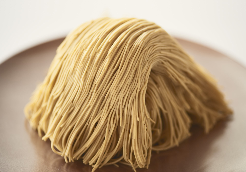 上の糸のような部分はお砂糖を一切加えていないので、栗そのものの甘さを楽しめます。1本1本の細さに驚きました! 栗のみで作られているのでほろほろとしています。